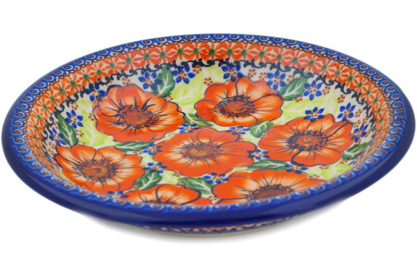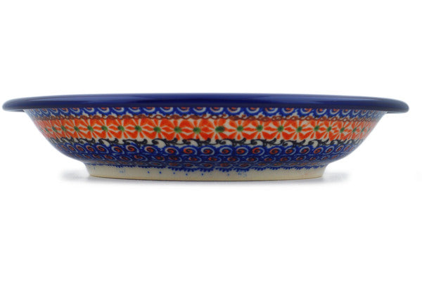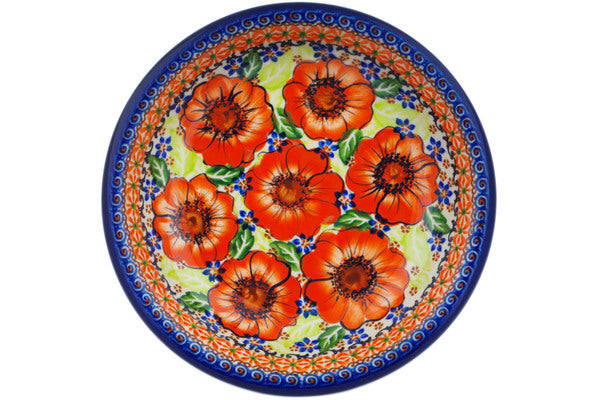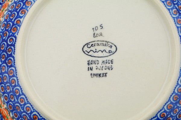 This Polish Pottery Pasta Bowl is handmade and handpainted by the Ceramika Nina factory in Boleslawiec, Poland. Manufacturer item number H2652P. It is 1½" high and measures 9" by 9". The capacity of this Pasta Bowl is 23.67 oz (brimful) and it weighs 1.4 lbs. It is part of the Orange Zinnia Collection.