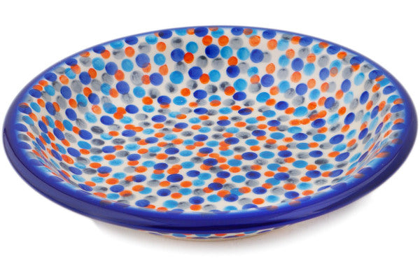 This Polish Pottery Pasta Bowl is handmade and handpainted by the Ceramika Bona factory in Boleslawiec, Poland. Manufacturer item number H2202R. It is 1½" high and measures 9" by 9". The capacity of this Pasta Bowl is 23.67 oz (brimful) and it weighs 1.4 lbs. It is part of the Polka Dot Frenzy Collection.