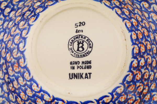 This Polish Pottery Pasta Bowl is handmade and handpainted by the Ceramika Bona factory in Boleslawiec, Poland. Manufacturer item number H8489Q. It is 1¾" high and measures 9¼" by 9¼". The capacity of this Pasta Bowl is 11.09 oz (brimful) and it weighs 1.5 lbs. It is part of the Poppy Passion Collection.