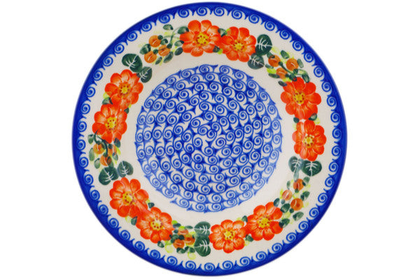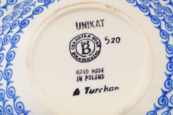 This Polish Pottery Pasta Bowl is handmade and handpainted by the Ceramika Bona factory in Boleslawiec, Poland. Manufacturer item number H6847P. It is 1¾" high and measures 9¼" by 9¼". The capacity of this Pasta Bowl is 11.09 oz (brimful) and it weighs 1.5 lbs. It is part of the Red Blossom Collection.