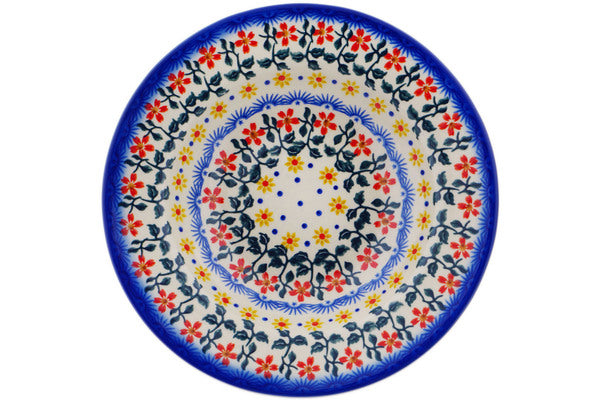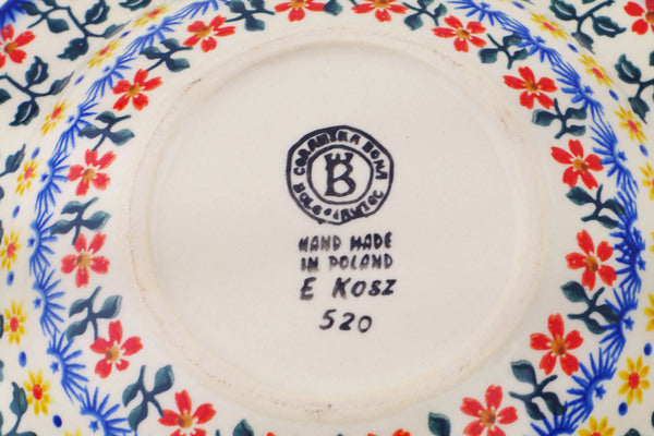 This Polish Pottery Pasta Bowl is handmade and handpainted by the Ceramika Bona factory in Boleslawiec, Poland. Manufacturer item number H4166Q. It is 1¾" high and measures 9¼" by 9¼". The capacity of this Pasta Bowl is 11.09 oz (brimful) and it weighs 1.5 lbs. It is part of the Red Sunflower Collection.