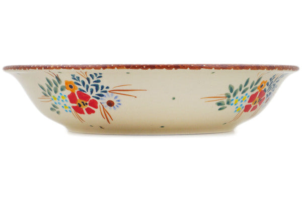 This Polish Pottery Pasta Bowl is handmade and handpainted by the Manufaktura factory in Boleslawiec, Poland. Manufacturer item number H0773O. It is 2" high and measures 8¾" by 8¾". The capacity of this Pasta Bowl is 24.68 oz (brimful) and it weighs 1.4 lbs. It is part of the Rustic Field Flowers Red Collection.