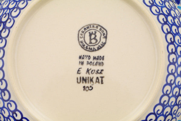 This Polish Pottery Pasta Bowl is handmade and handpainted by the Ceramika Bona factory in Boleslawiec, Poland. Manufacturer item number H2705Q. It is 1½" high and measures 9" by 9". The capacity of this Pasta Bowl is 23.67 oz (brimful) and it weighs 1.4 lbs. It is part of the Spring Flowers Collection.