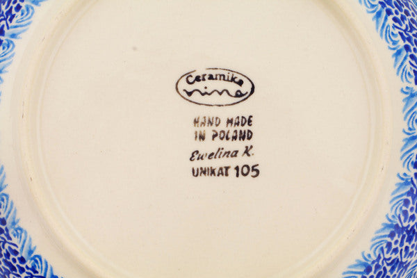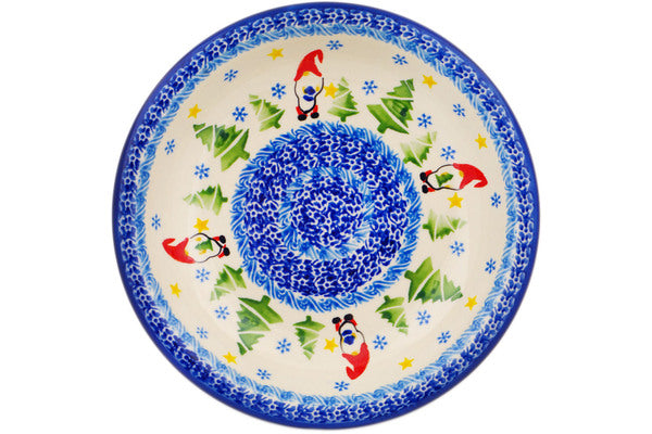 This Polish Pottery Pasta Bowl is handmade and handpainted by the Ceramika Nina factory in Boleslawiec, Poland. Manufacturer item number H1691P. It is 1½" high and measures 9" by 9". The capacity of this Pasta Bowl is 23.67 oz (brimful) and it weighs 1.4 lbs. It is part of the Twinkle Twinkle Little Gnome Collection.