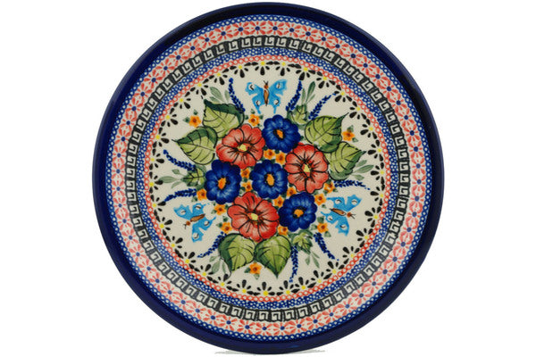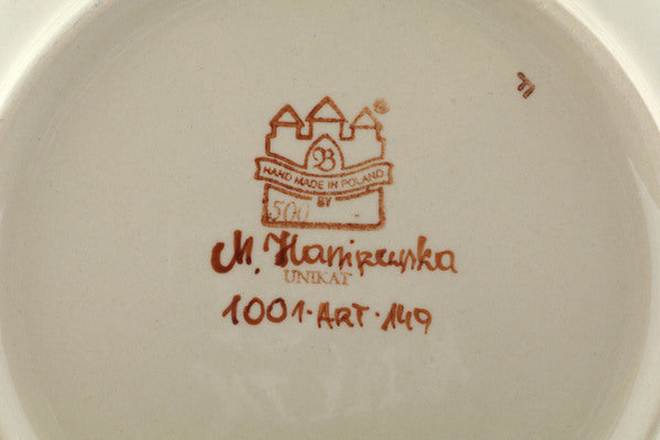 This Polish Pottery Plate is handmade and handpainted by the Zaklady Ceramiczne factory in Boleslawiec, Poland. Manufacturer item number H8666B. It is 1" high and measures 9½" by 9½". The weight of this Plate is 1.6 lbs. It is part of the Spring Splendor Collection.