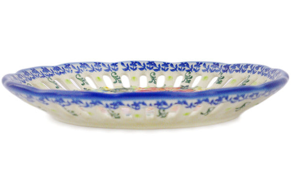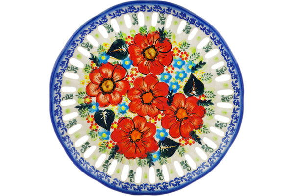 This Polish Pottery Plate with Holes is handmade and handpainted by the Ceramika Bona factory in Boleslawiec, Poland. Manufacturer item number H6683R. It is 1½" high and measures 9¼" by 9¼". The weight of this Plate with Holes is 1.5 lbs. It is part of the Bold Red Poppies Collection.