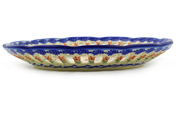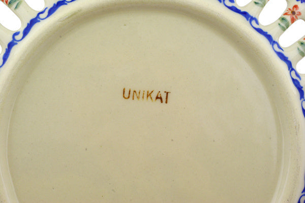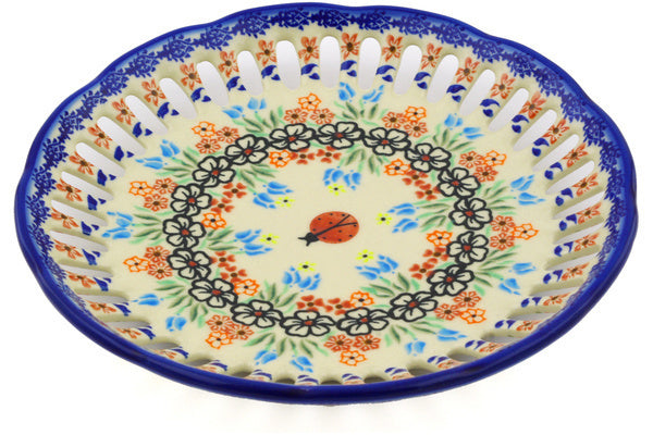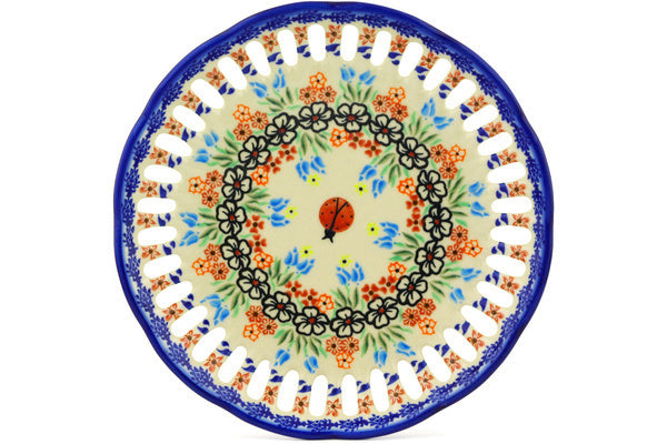 This Polish Pottery Plate with Holes is handmade and handpainted by the Ceramika Bona factory in Boleslawiec, Poland. Manufacturer item number H0791F. It is 1½" high and measures 9¼" by 9¼". The weight of this Plate with Holes is 1.5 lbs. It is part of the Fanciful Ladybug Collection.