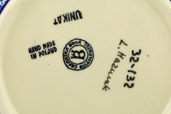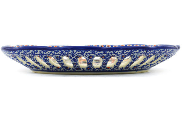 This is a Polish pottery Unikat (Signature) Plate with Holes, which means that it has been hand painted with both sponges and brushes and it is signed by the artist who painted it. Unikat pieces are the most intricate works of art. Larger Unikat items take hours of very careful work to finish.