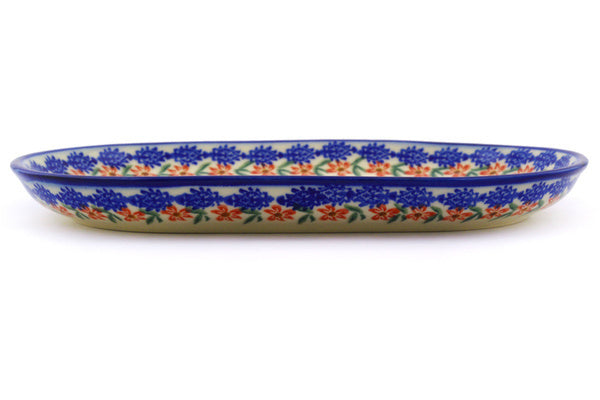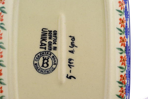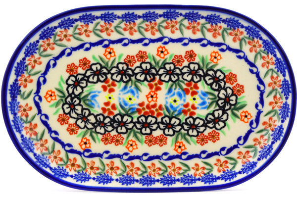 This Polish Pottery Platter is handmade and handpainted by the Ceramika Bona factory in Boleslawiec, Poland. Manufacturer item number H1974G. It is 1" high and measures 9" by 5¾". The weight of this Platter is 0.8 lbs. It is part of the Fanciful Ladybug Collection.