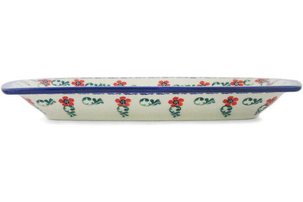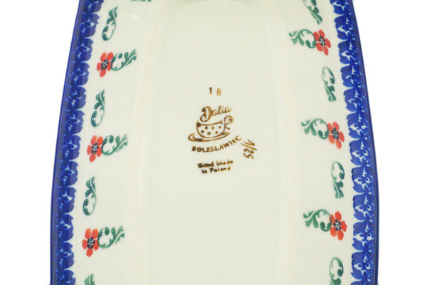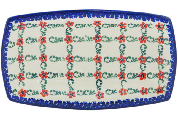 This Polish Pottery Platter is handmade and handpainted by the Dalia factory in Boleslawiec, Poland. Manufacturer item number H0471R. It is ¼" high and measures 9" by 5". The weight of this Platter is 1.3 lbs. It is part of the Red Flower Lattice Collection.