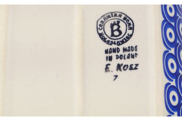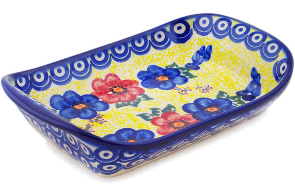 This Polish Pottery Platter with Handles is handmade and handpainted by the Ceramika Bona factory in Boleslawiec, Poland. Manufacturer item number H7141Q. It is 1¾" high and measures 8¾" by 5¾". The weight of this Platter with Handles is 1.2 lbs. It is part of the Neon Poppies Collection.