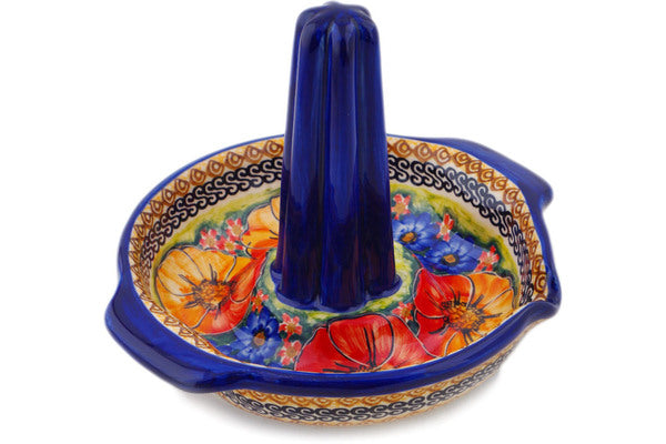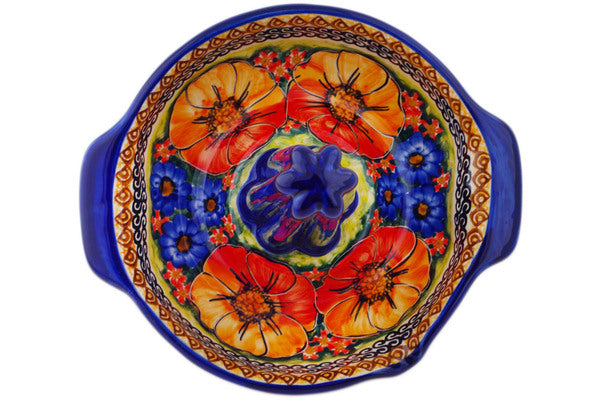 This Polish Pottery Roaster with Handles and Spout is handmade and handpainted by the Cer-Raf factory in Boleslawiec, Poland. Manufacturer item number H8277K. It is 7" high and measures 9" by 7¾". The weight of this Roaster with Handles and Spout is 2.0 lbs. It is part of the Bright Beauty Collection.