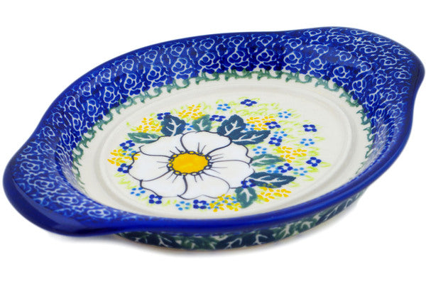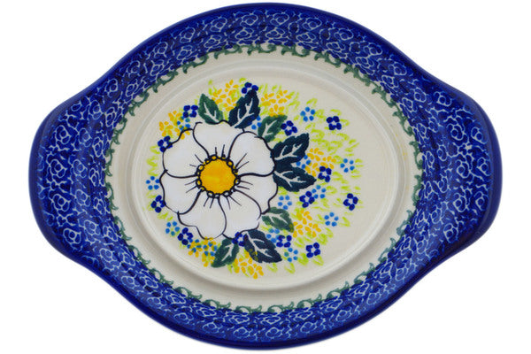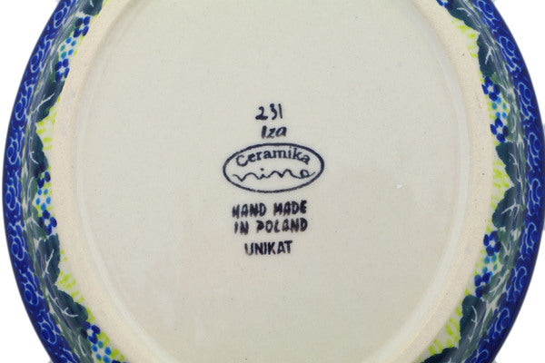 This Polish Pottery Saucer is handmade and handpainted by the Ceramika Nina factory in Boleslawiec, Poland. Manufacturer item number H1084P. It is 1¼" high and measures 8¾" by 6¼". The weight of this Saucer is 1.1 lbs. It is part of the Floral Fantasy Collection.