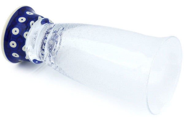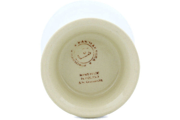 This Polish Pottery Glass is handmade and handpainted by the Manufaktura factory in Boleslawiec, Poland. Manufacturer item number H3242K. It is 8" high and measures 3¾" by 3¾". The capacity of this Glass is 19.21 oz (brimful) and it weighs 0.9 lbs. It is part of the Peacock Eyes Collection.