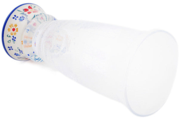 This Polish Pottery Glass is handmade and handpainted by the Manufaktura factory in Boleslawiec, Poland. Manufacturer item number H4461Q. It is 8" high and measures 3¾" by 3¾". The capacity of this Glass is 19.21 oz (brimful) and it weighs 0.9 lbs. It is part of the Spring's Red Garden Collection.
