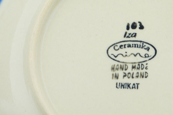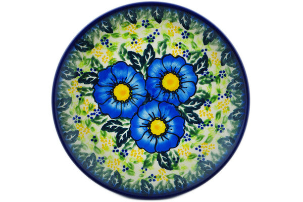 This Polish Pottery Plate is handmade and handpainted by the Ceramika Nina factory in Boleslawiec, Poland. Manufacturer item number H0189P. It is 1" high and measures 7½" by 7½". The weight of this Plate is 0.8 lbs. It is part of the Blue Happy Fields Collection.