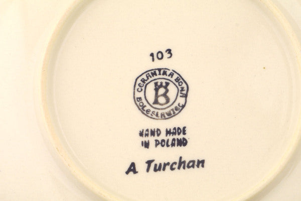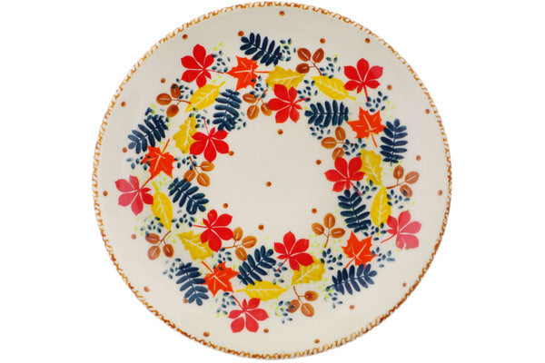 This Polish Pottery Plate is handmade and handpainted by the Ceramika Bona factory in Boleslawiec, Poland. Manufacturer item number H2116R. It is 1" high and measures 7½" by 7½". The weight of this Plate is 0.8 lbs. It is part of the Falling Leaves Collection.