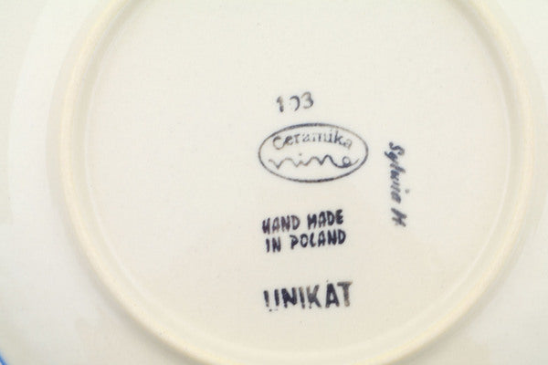 This Polish Pottery Plate is handmade and handpainted by the Ceramika Nina factory in Boleslawiec, Poland. Manufacturer item number H3100P. It is 1" high and measures 7½" by 7½". The weight of this Plate is 0.8 lbs. It is part of the Gardens In Poland Collection.