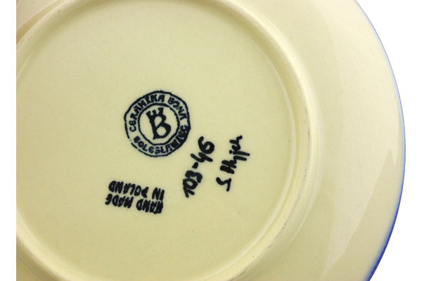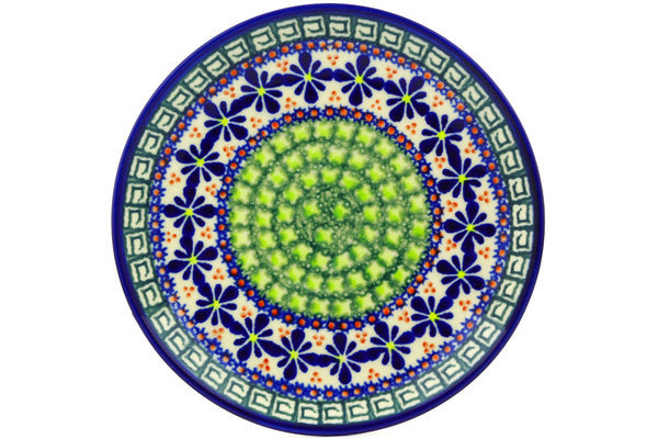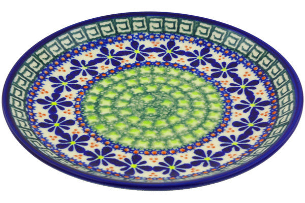 This Polish Pottery Plate is handmade and handpainted by the Ceramika Bona factory in Boleslawiec, Poland. Manufacturer item number H2304G. It is 1" high and measures 7½" by 7½". The weight of this Plate is 0.8 lbs. It is part of the Irish Spring Collection.