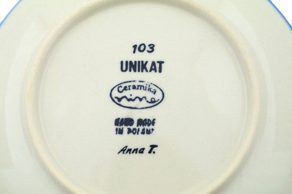 This is a Polish pottery Unikat (Signature) Plate, which means that it has been hand painted with both sponges and brushes and it is signed by the artist who painted it. Unikat pieces are the most intricate works of art. Larger Unikat items take hours of very careful work to finish.