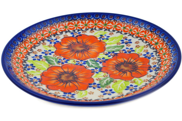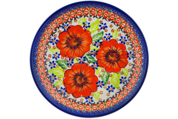 This Polish Pottery Plate is handmade and handpainted by the Ceramika Nina factory in Boleslawiec, Poland. Manufacturer item number H3099P. It is 1" high and measures 7½" by 7½". The weight of this Plate is 0.8 lbs. It is part of the Orange Zinnia Collection.