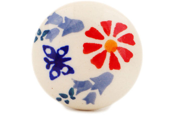 This Polish Pottery Drawer Pull Knob is handmade and handpainted by the Manufaktura factory in Boleslawiec, Poland. Manufacturer item number H7225P. It is 1¼" high and measures 1½" by 1½". The weight of this Drawer Pull Knob is 0.1 lbs. It is part of the Last Summer Flowers Collection.