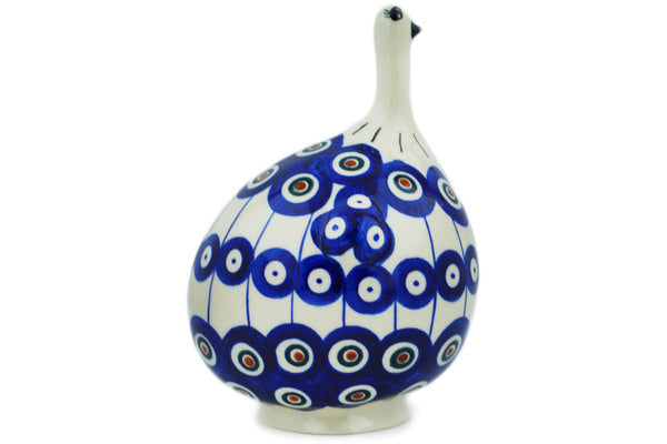 This Polish Pottery Bird Figurine is handmade and handpainted by the Ceramika Rose factory in Boleslawiec, Poland. Manufacturer item number H3158N. It is 6" high and measures 4¼" by 3¾". The weight of this Bird Figurine is 0.7 lbs. It is part of the Peacock Collection.