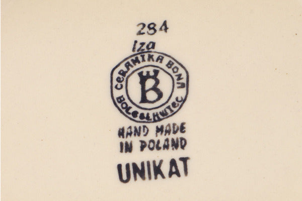 This is a Polish pottery Unikat (Signature) Bowl, which means that it has been hand painted with both sponges and brushes and it is signed by the artist who painted it. Unikat pieces are the most intricate works of art. Larger Unikat items take hours of very careful work to finish.