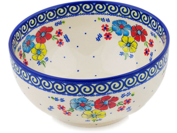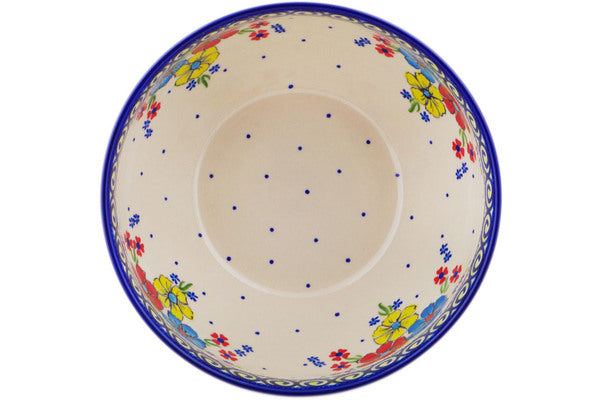 This Polish Pottery Bowl is handmade and handpainted by the Ceramika Bona factory in Boleslawiec, Poland. Manufacturer item number H2146R. It is 4½" high and measures 9" by 9". The capacity of this Bowl is 101.51 oz (brimful) and it weighs 2.8 lbs. It is part of the Country Three Collection.