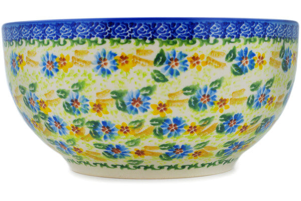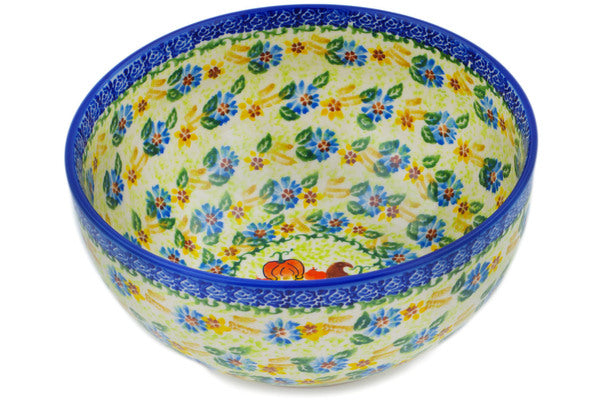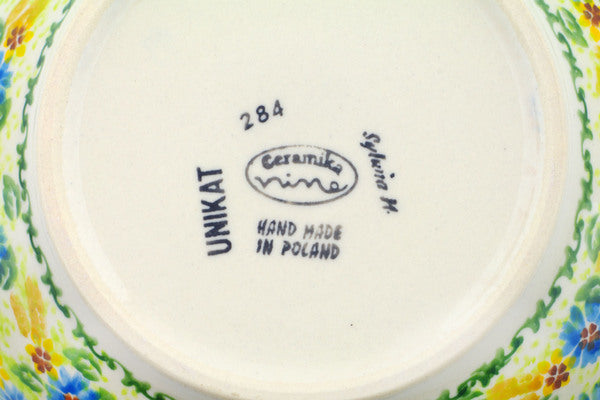 This Polish Pottery Bowl is handmade and handpainted by the Ceramika Nina factory in Boleslawiec, Poland. Manufacturer item number H3245P. It is 4½" high and measures 9" by 9". The capacity of this Bowl is 101.51 oz (brimful) and it weighs 2.8 lbs. It is part of the Gnomeo And Juliet Collection.
