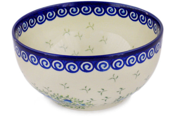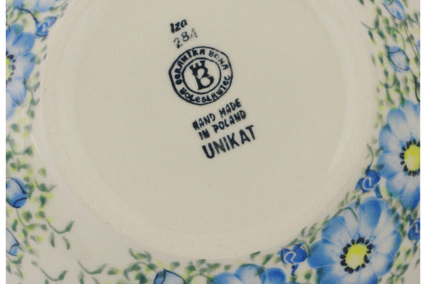 This Polish Pottery Bowl is handmade and handpainted by the Ceramika Bona factory in Boleslawiec, Poland. Manufacturer item number H2159R. It is 4½" high and measures 9" by 9". The capacity of this Bowl is 101.51 oz (brimful) and it weighs 2.8 lbs. It is part of the Gorgeous Morning Glory Collection.
