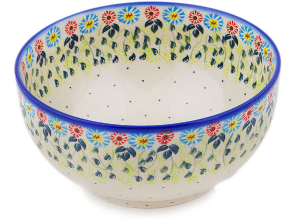 This Polish Pottery Bowl is handmade and handpainted by the Ceramika Bona factory in Boleslawiec, Poland. Manufacturer item number H2158R. It is 4½" high and measures 9" by 9". The capacity of this Bowl is 101.51 oz (brimful) and it weighs 2.8 lbs. It is part of the Long-stemmed Beauties Collection.