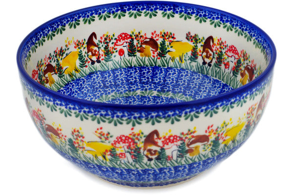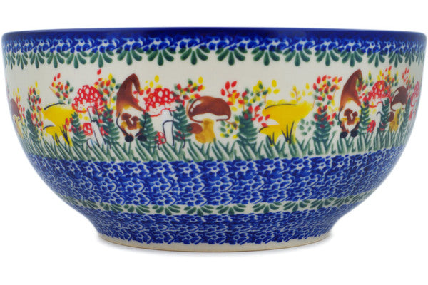 This Polish Pottery Bowl is handmade and handpainted by the Ceramika Nina factory in Boleslawiec, Poland. Manufacturer item number H1622P. It is 4½" high and measures 9" by 9". The capacity of this Bowl is 101.51 oz (brimful) and it weighs 2.8 lbs. It is part of the Mushroom Love Collection.