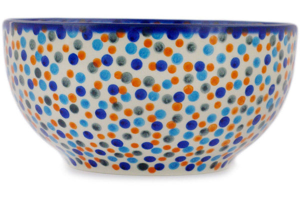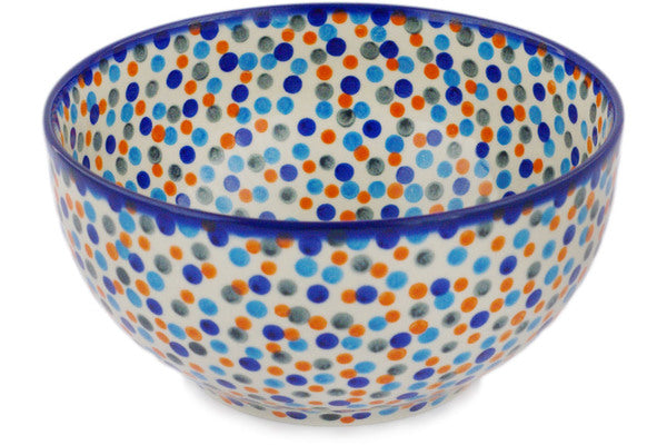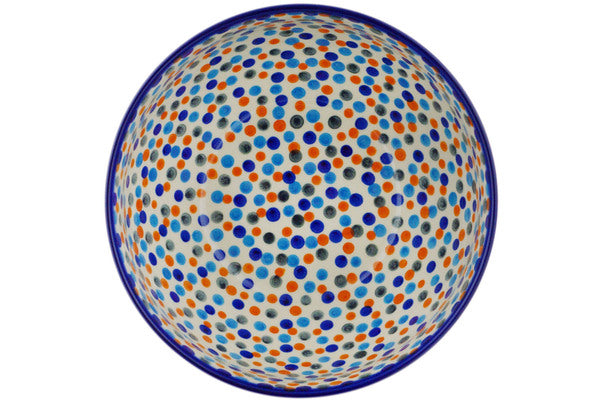 This Polish Pottery Bowl is handmade and handpainted by the Ceramika Bona factory in Boleslawiec, Poland. Manufacturer item number H1952R. It is 4½" high and measures 9" by 9". The capacity of this Bowl is 101.51 oz (brimful) and it weighs 2.8 lbs. It is part of the Polka Dot Frenzy Collection.