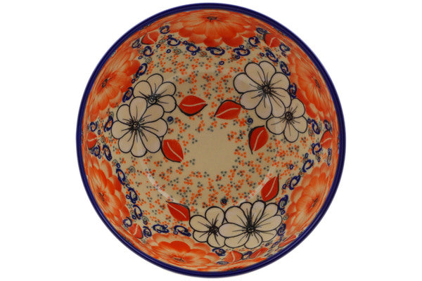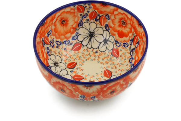 This Polish Pottery Bowl is handmade and handpainted by the Ceramika Bona factory in Boleslawiec, Poland. Manufacturer item number H4210K. It is 4½" high and measures 9" by 9". The capacity of this Bowl is 101.51 oz (brimful) and it weighs 2.8 lbs. It is part of the Poppy Passion Collection.