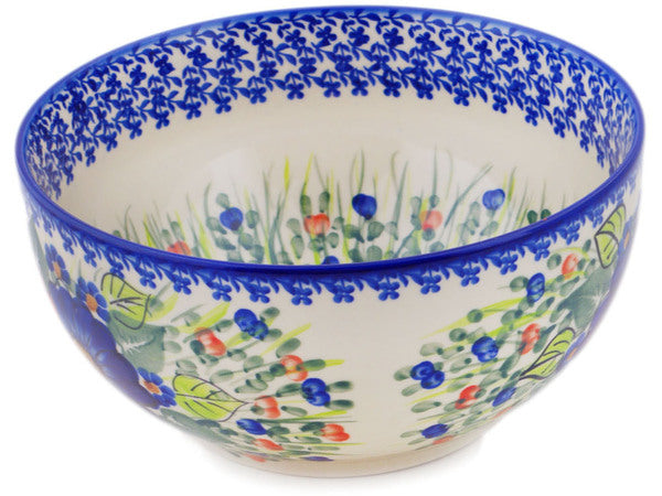 This Polish Pottery Bowl is handmade and handpainted by the Ceramika Bona factory in Boleslawiec, Poland. Manufacturer item number H7150Q. It is 4½" high and measures 9" by 9". The capacity of this Bowl is 101.51 oz (brimful) and it weighs 2.8 lbs. It is part of the Poppy Trio Collection.