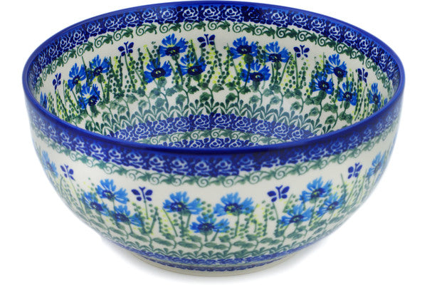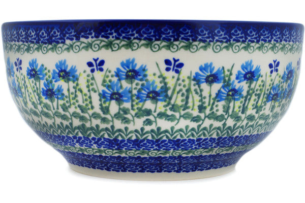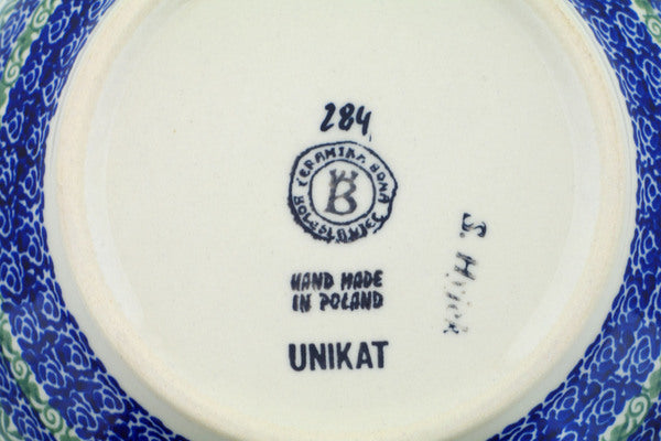 This Polish Pottery Bowl is handmade and handpainted by the Ceramika Bona factory in Boleslawiec, Poland. Manufacturer item number H0906P. It is 4½" high and measures 9" by 9". The capacity of this Bowl is 101.51 oz (brimful) and it weighs 2.8 lbs. It is part of the Fresh Flora Collection.