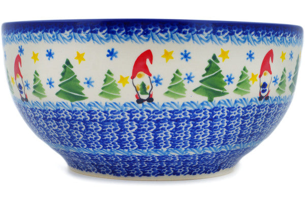 This Polish Pottery Bowl is handmade and handpainted by the Ceramika Nina factory in Boleslawiec, Poland. Manufacturer item number H1537P. It is 4½" high and measures 9" by 9". The capacity of this Bowl is 101.51 oz (brimful) and it weighs 2.8 lbs. It is part of the Twinkle Twinkle Little Gnome Collection.