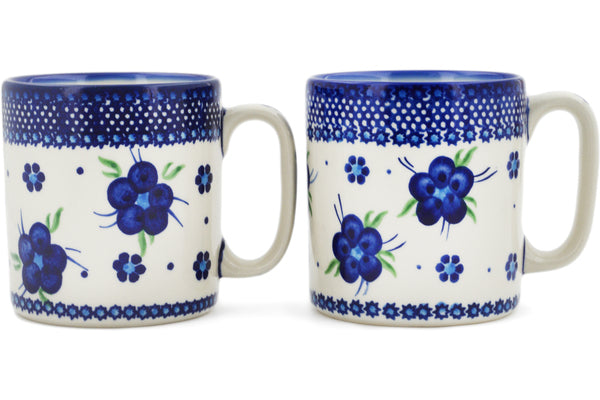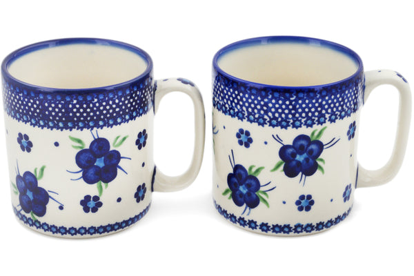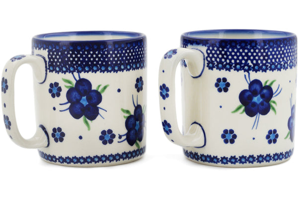 This Polish Pottery Set of 2 Mugs is handmade and handpainted by the Ceramika Bona factory in Boleslawiec, Poland. Manufacturer item number H1254L. It is 6¼" high and measures 10" by 6¼". The capacity of this Set of 2 Mugs is 24.00 oz (brimful) and it weighs 2.8 lbs. It is part of the Bleu-Belle Fleur Collection.