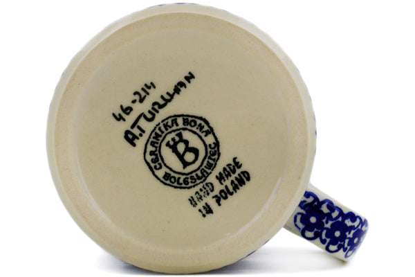 This Polish Pottery Set of 2 Mugs is handmade and handpainted by the Ceramika Bona factory in Boleslawiec, Poland. Manufacturer item number H1563K. It is 6¼" high and measures 10" by 6¼". The capacity of this Set of 2 Mugs is 24.00 oz (brimful) and it weighs 2.8 lbs. It is part of the Floral Peacock Collection.