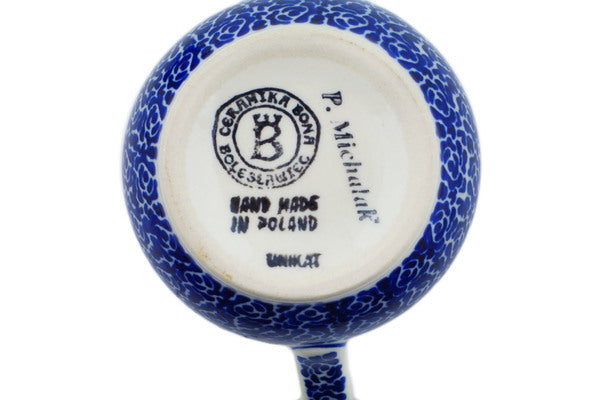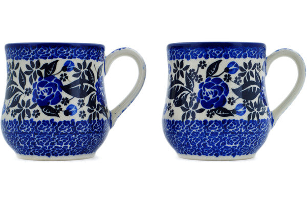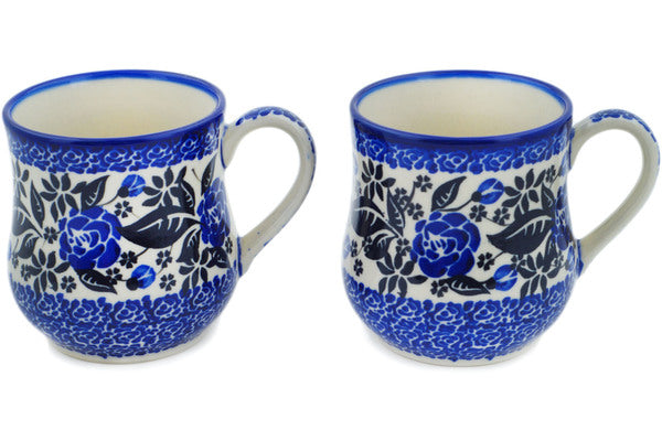 This Polish Pottery Set of 2 Mugs is handmade and handpainted by the Ceramika Bona factory in Boleslawiec, Poland. Manufacturer item number H1329O. It is 3¾" high and measures 4½" by 3¼". The capacity of this Set of 2 Mugs is 13.53 oz (brimful) and it weighs 0.7 lbs. It is part of the Midnights Collection.