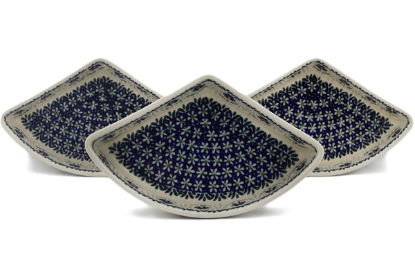 This Polish Pottery Set of 3 Bowls is handmade and handpainted by the Manufaktura factory in Boleslawiec, Poland. Manufacturer item number H0594L. It is 2¼" high and measures 8½" by 5". The capacity of this Set of 3 Bowls is 18.09 oz (brimful) and it weighs 1.2 lbs. It is part of the Mariposa Lily Collection.
