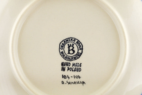 This Polish Pottery Set of 4 Plates is handmade and handpainted by the Ceramika Bona factory in Boleslawiec, Poland. Manufacturer item number H6013K. It is 1" high and measures 7½" by 7½". The weight of this Set of 4 Plates is 0.8 lbs. It is part of the Peacock Tulip Garden Collection.