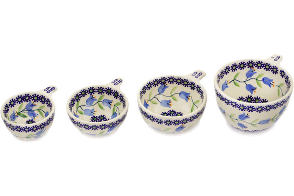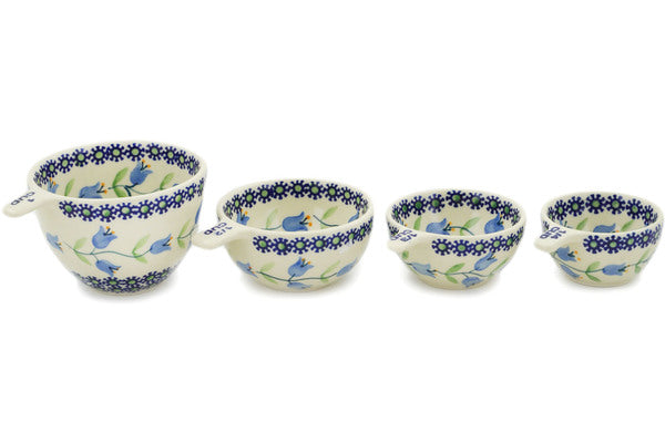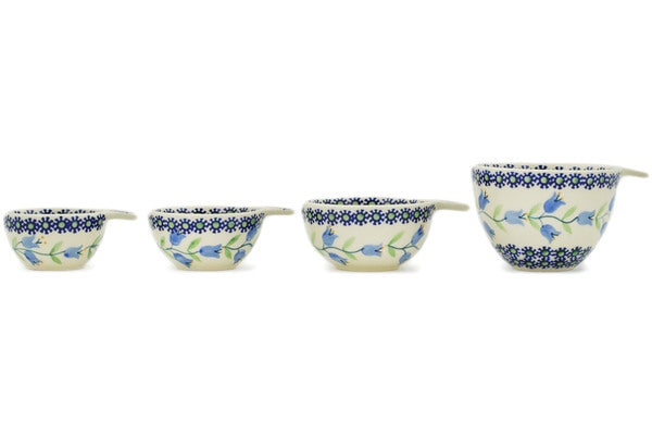This Polish Pottery Set of 4 Measuring Cups is handmade and handpainted by the Manufaktura factory in Boleslawiec, Poland. Manufacturer item number H2030M. It is 2½" high and measures 4¾" by 3¾". The capacity of this Set of 4 Measuring Cups is 8.39 oz (brimful) and it weighs 1.1 lbs. It is part of the Sweet Dreams Collection.
