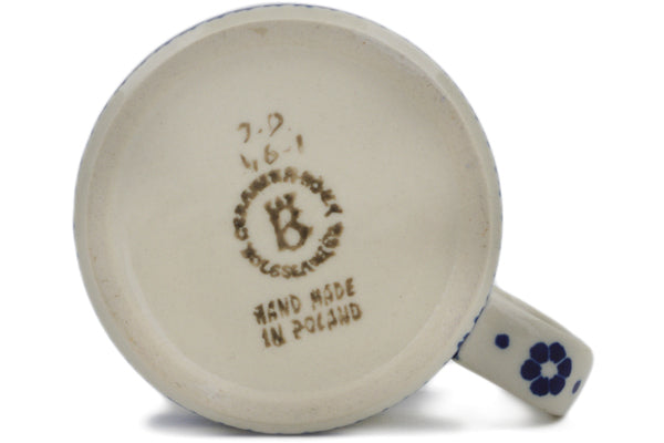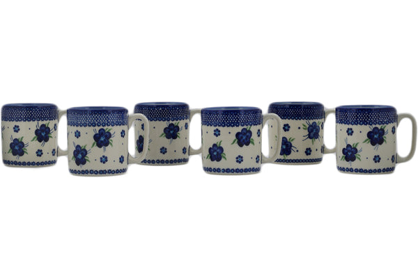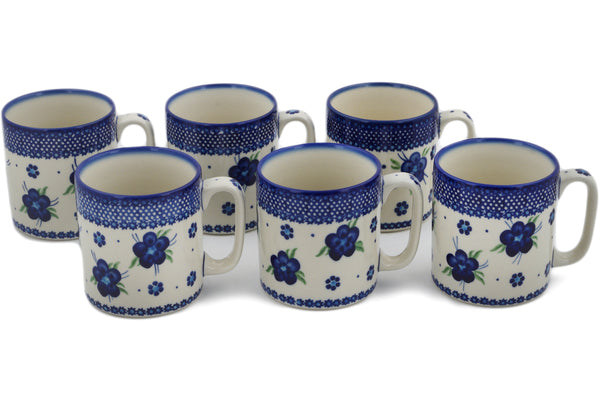 This Polish Pottery Set of 6 Mugs is handmade and handpainted by the Ceramika Bona factory in Boleslawiec, Poland. Manufacturer item number H0752L. It is 3¾" high and measures 4¾" by 3½". The capacity of this Set of 6 Mugs is 11.83 oz (brimful) and it weighs 0.9 lbs. It is part of the Bleu-Belle Fleur Collection.