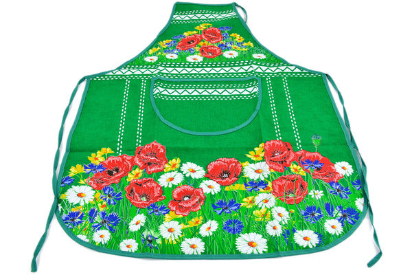 This Textile Apron is create by the Textiles factory in Poland. Manufacturer item number H4128M. It is 0.08" high and measures 31¼" by 22½". The weight of this Apron is 0.2 lbs. It is part of the Poppy Garden Green Collection.